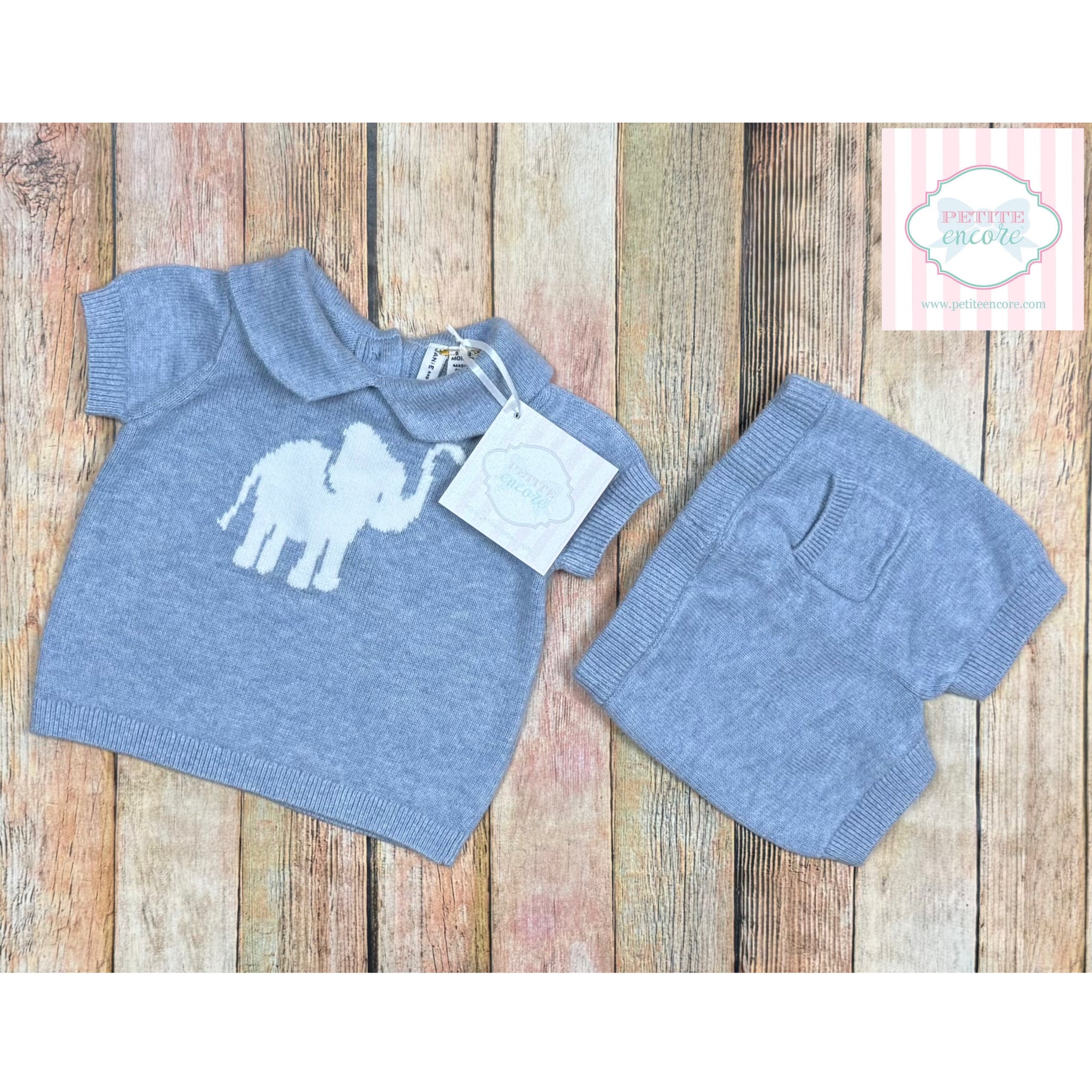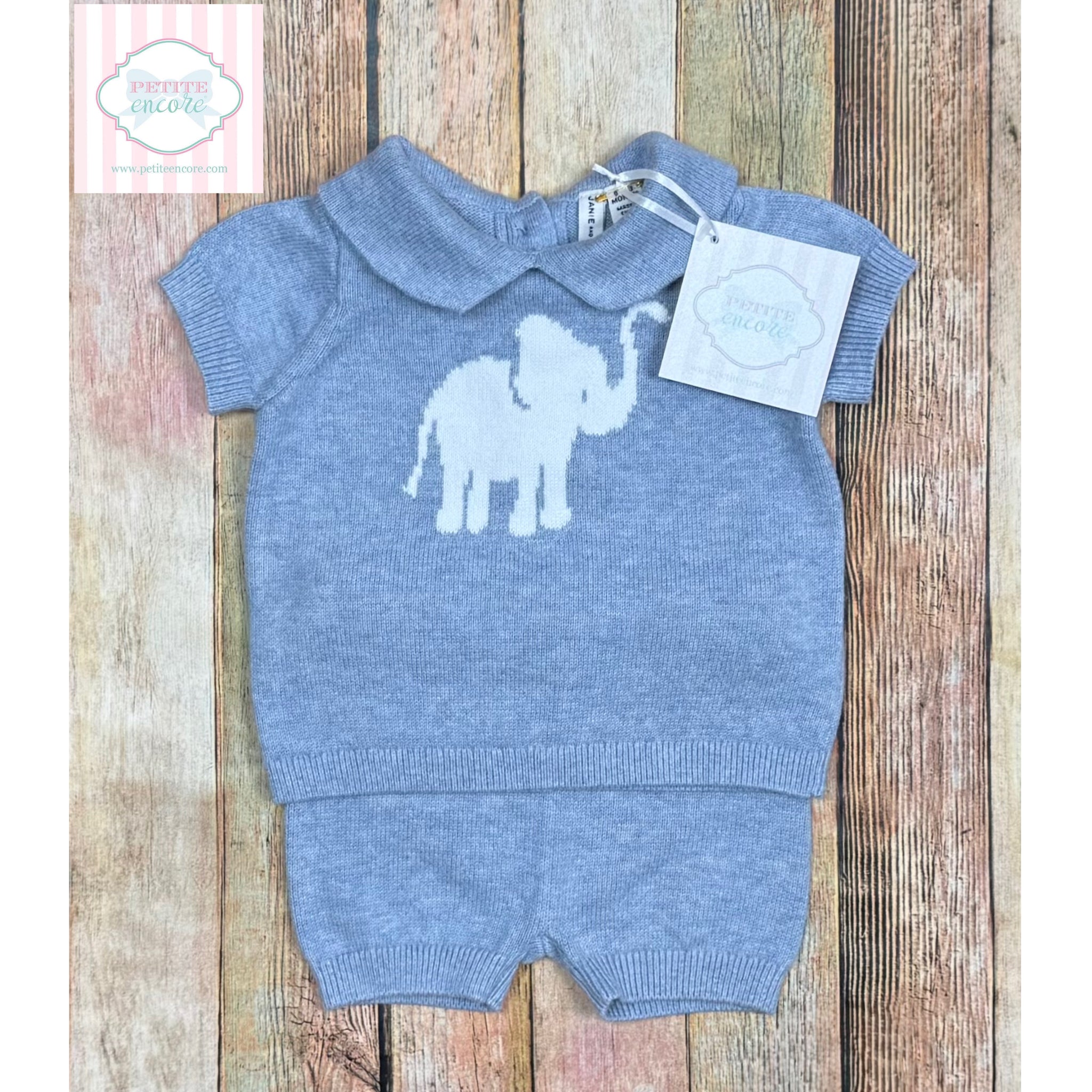 The sweetest little soft knit elephant themed two piece by Janie and Jack - size 0-3 months