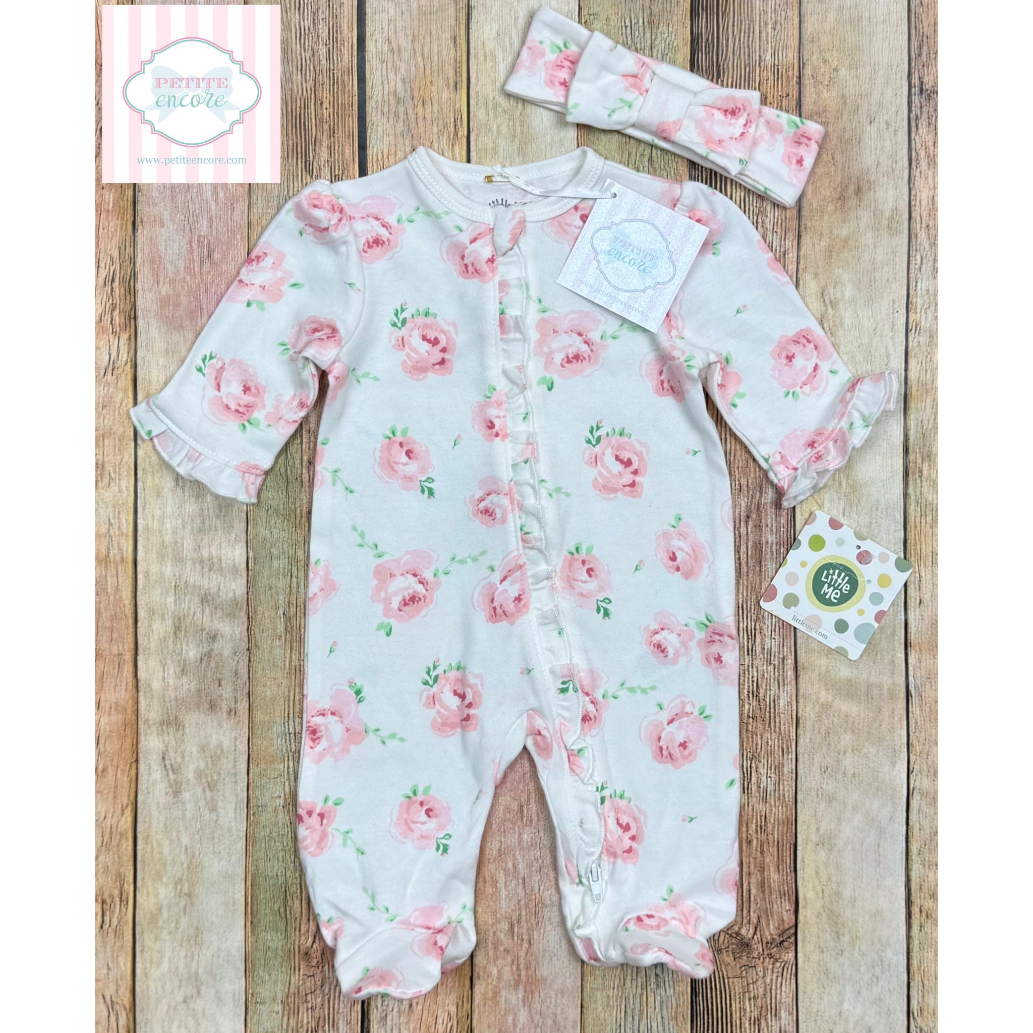 Beautiful silky soft cotton one piece with matching headband by Little Me -size Newborn