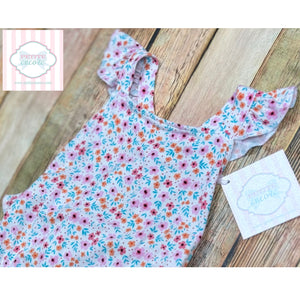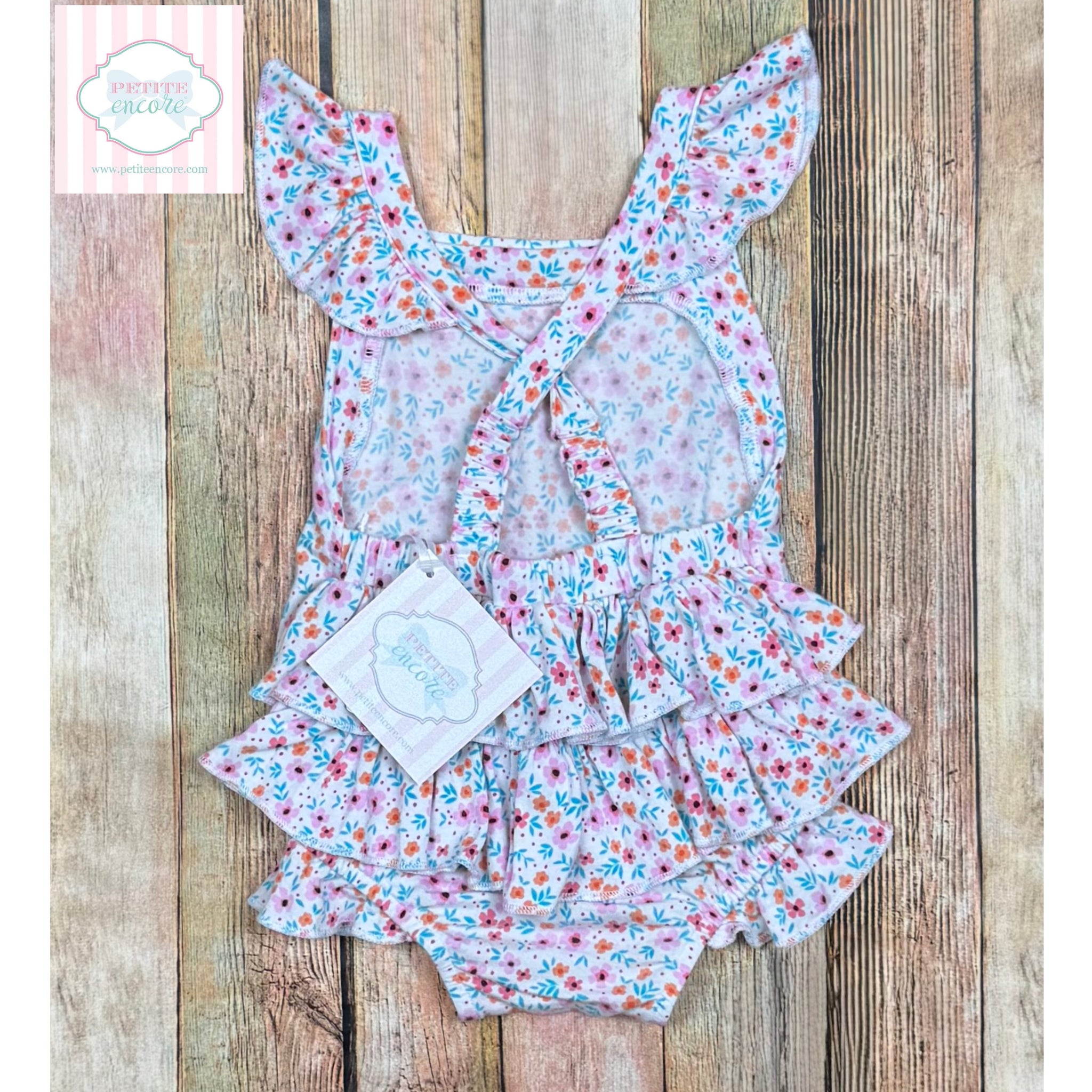 The sweetest little silky soft floral sunsuit by Posh Peanut- size 3-6 months