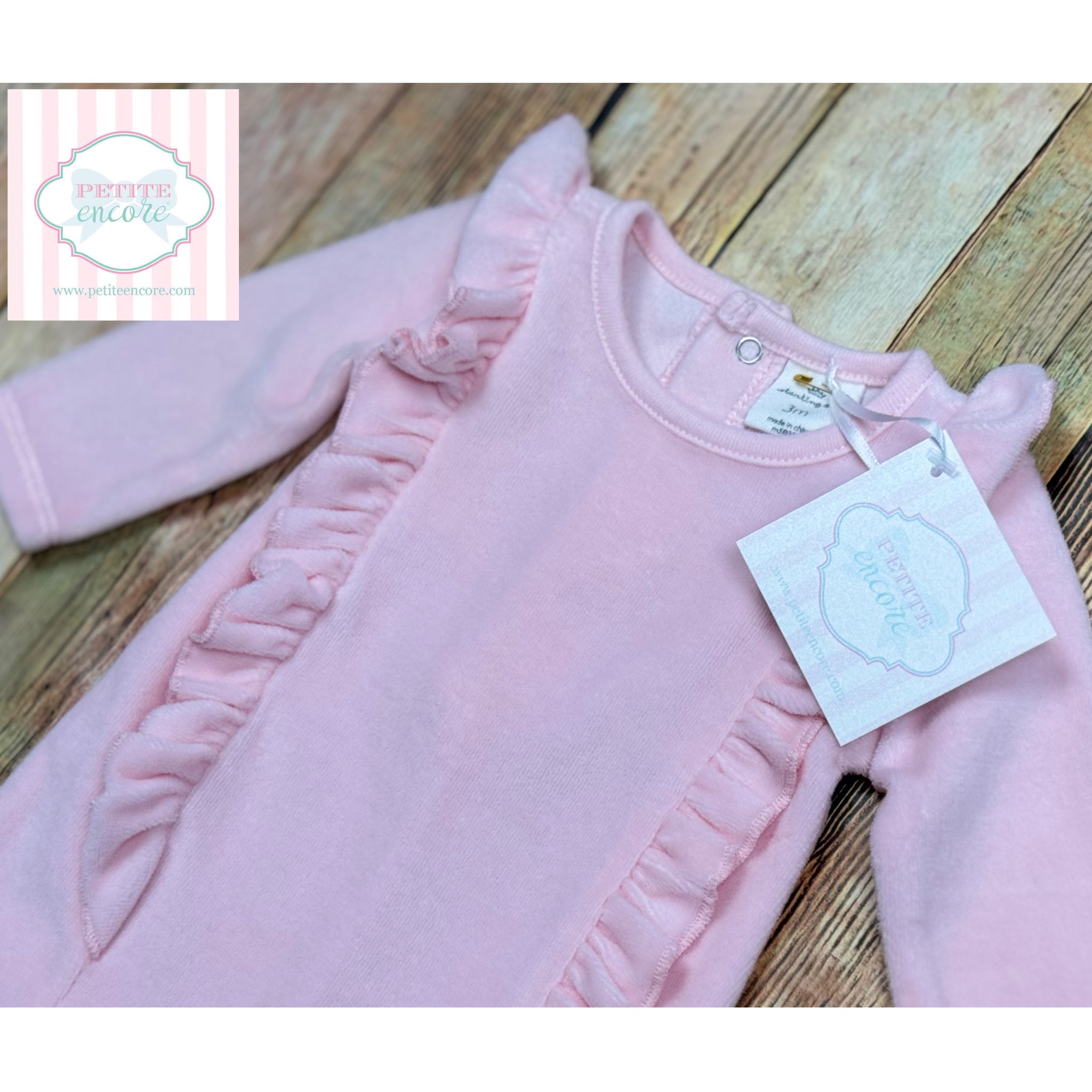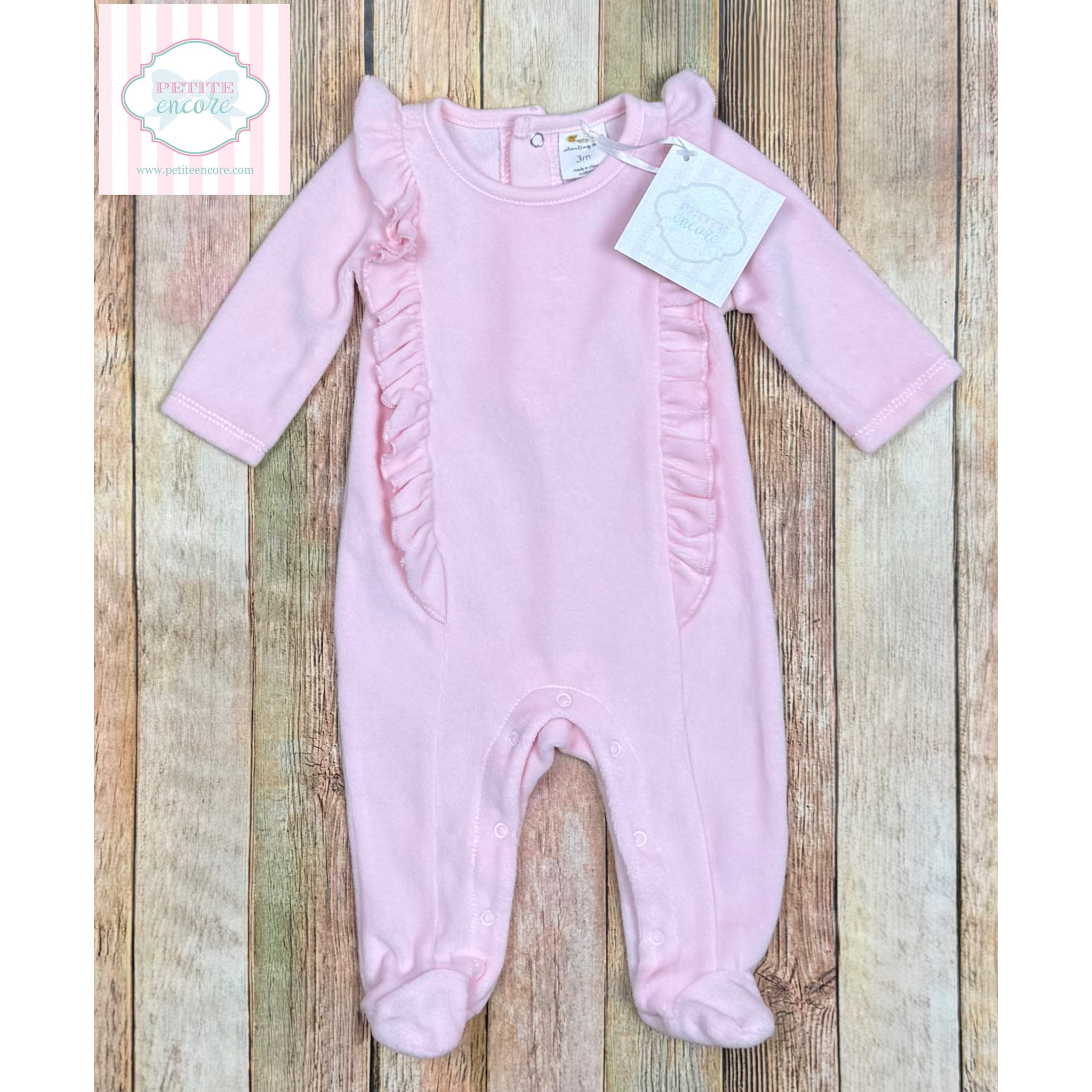 The most darling little velour footed one piece with ruffle detail by Starting Out- size 3 months