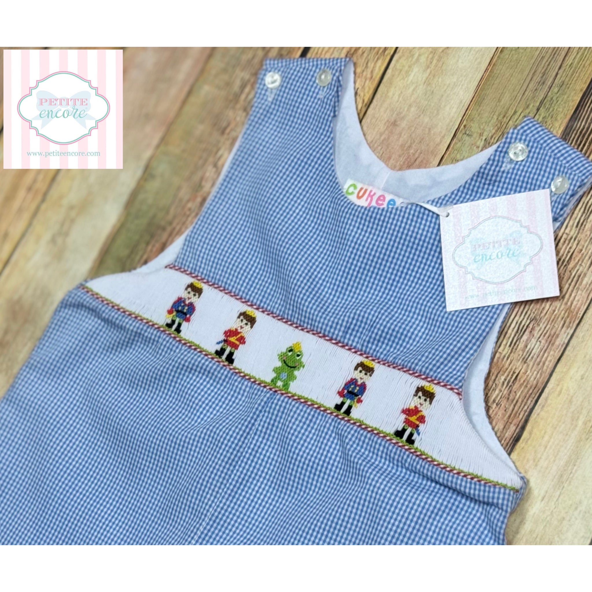 Classic and beautiful frog prince themed smocked one piece by Cukees Baby- size 24 months
