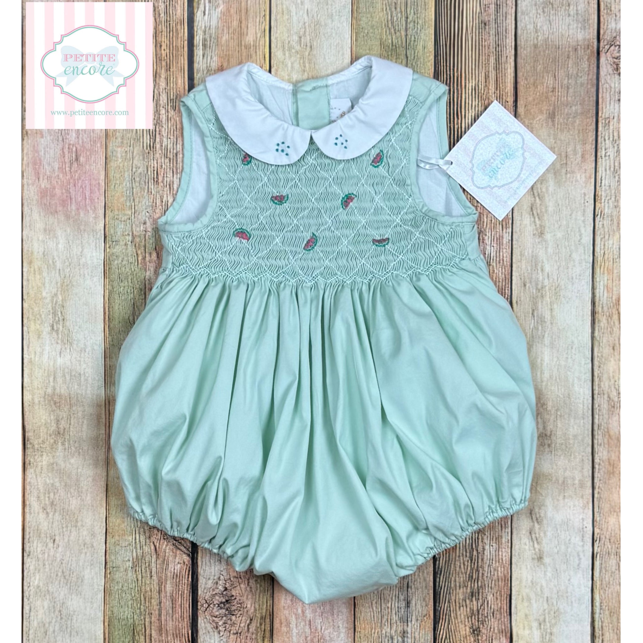 The most beautiful little watermelon themed smocked bubble by Antoinette, Paris - size 18 months