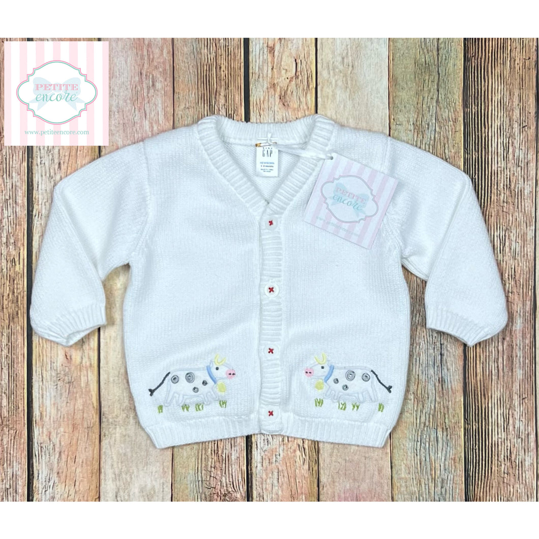 The most beautiful little soft knit cow themed cardigan by Baby Gap- size 3-6 months